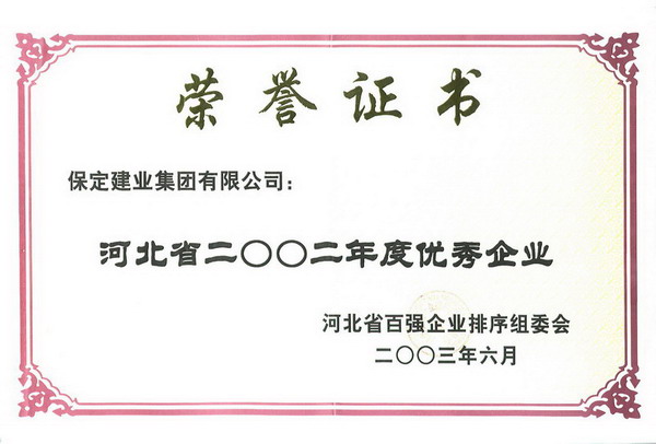 02年度省百?gòu)?qiáng)優(yōu)秀企業(yè)證書