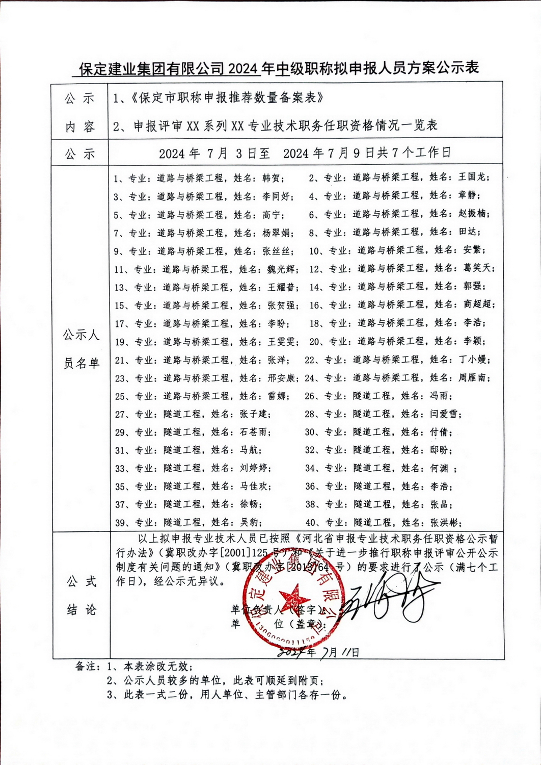 2024年中級職稱擬申報(bào)人員方案公示-道路系列