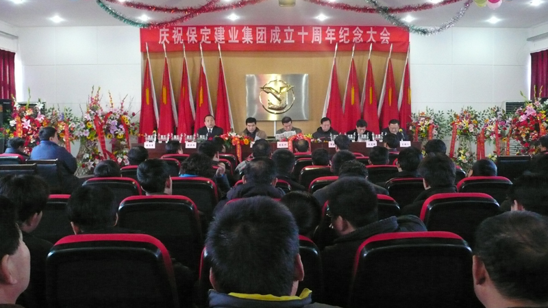 2008年12月18日上午8時28分,慶祝保定建業(yè)集團成立十周年紀念大會在集團公司六樓大會議室隆重召開,參加大會的有市建設(shè)局有關(guān)領(lǐng)導、市總工會有關(guān)領(lǐng)導、兄弟單位領(lǐng)導、集團領(lǐng)導及集團公司有關(guān)人員共計200余人,共有60多家單位給本次大會的召開發(fā)來了賀信,大會在隆重的國歌聲中開幕。