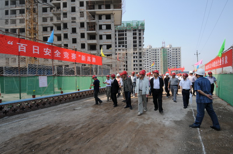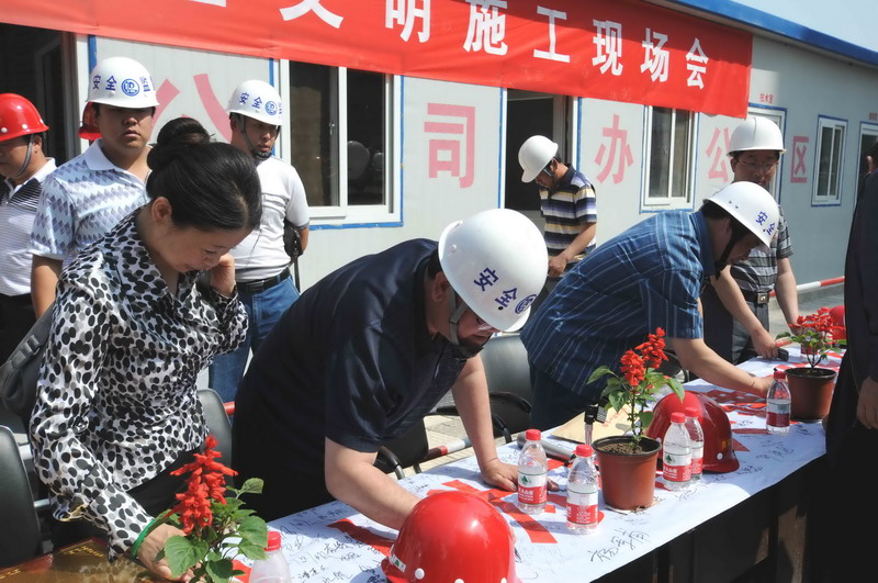 2010年6月4日,張家口住建局在我集團(tuán)六公司承建的張家口親河苑小區(qū)項目部召開了建筑施工安全文明施工現(xiàn)場會,張家口市住建局局長李義、安監(jiān)站站長張芝祥及各區(qū)縣住建局、安監(jiān)站負(fù)責(zé)人,施工、監(jiān)理單位負(fù)責(zé)人共72個單位220余人出席了會議,并在我集團(tuán)安全百日賽的宣傳條幅上了簽字。